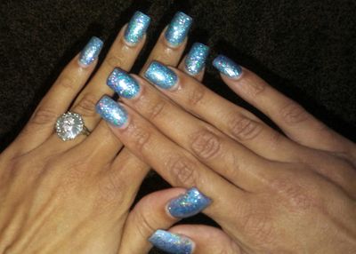 The experience was great. Fun friendly technicians who offer a level skill that i found out be very satisfying. This visit i changed up my normal desired shape of square, and choose stiletto. That long sleek claw like nails. So seductive yet mysteriously scary. The color what a vibrant shade of blue with silver sparkle rush strokes.