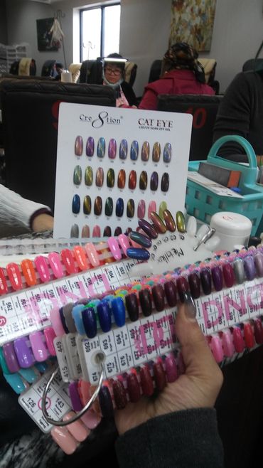 Clients seem to fill up the establishment by 12. While management is on point and attentive to the customers. 2 minutes after my arrival the salon manager approached me and asked me what my reason for frequenting the salon was. I began to tell her I wanted a fill, cut down and for my nails to be turned into square from the stiletto cut. She told me that it would be $40 which is a good price for the procedure rendered. I was upset however they did not have glow-in-the-dark gel powder. I picked out a trustee gel polish.